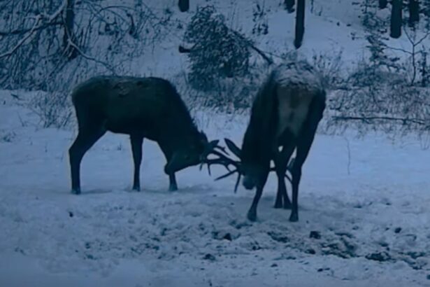 Capturarea momentelor surprinzătoare în pădurea Ocolului Silvic Mălini Doi cerbi tineri au fost surprinși…