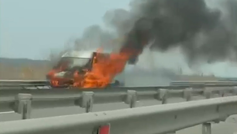 O autoutilitară a luat foc în mers, luni la prânz, pe autostrada A3, pe sensul dinspre Ploiești către București. Circulația rutieră pe acest sens este oprită temporar.