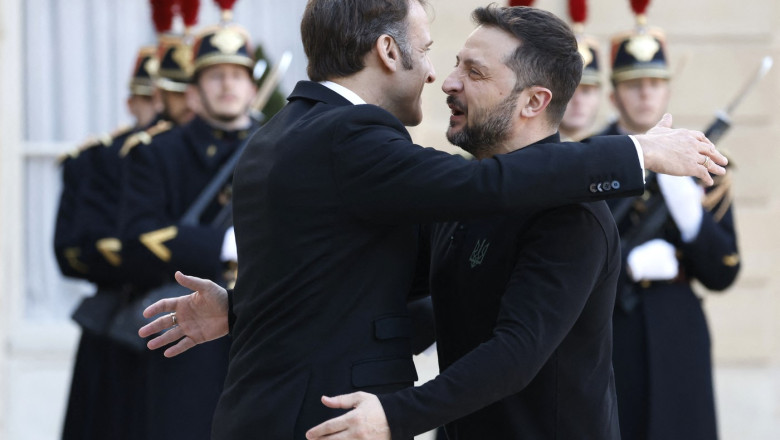 Întâlnire călduroasă la Palatul Elysee: Macron îl îmbrățișează pe Zelenski cu o zi înainte de summitul dedicat securității Ucrainei