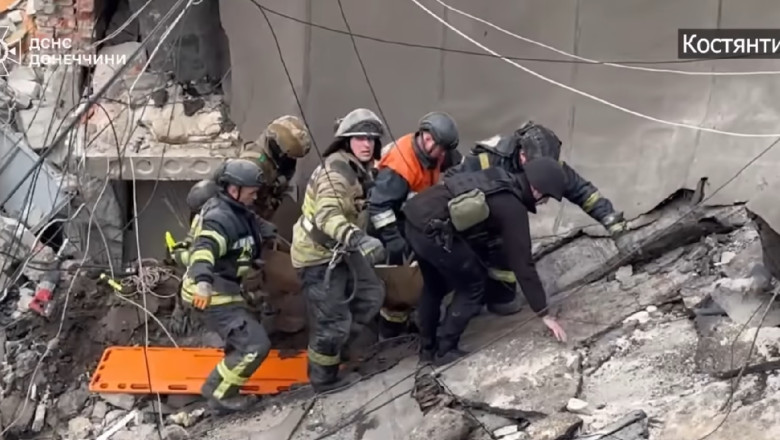 Echipele de salvare, împreună cu poliția, au reușit să scoată o femeie din dărâmăturile unei clădiri cu mai multe etaje, la aproape 20 de ore după un atac aerian rusesc asupra orașului Kostiantinivka din regiunea Donețk. Femeia, rănită în urma atacului, a fost predată paramedicilor Poliției Naționale, care au transportat-o de urgență la spital.